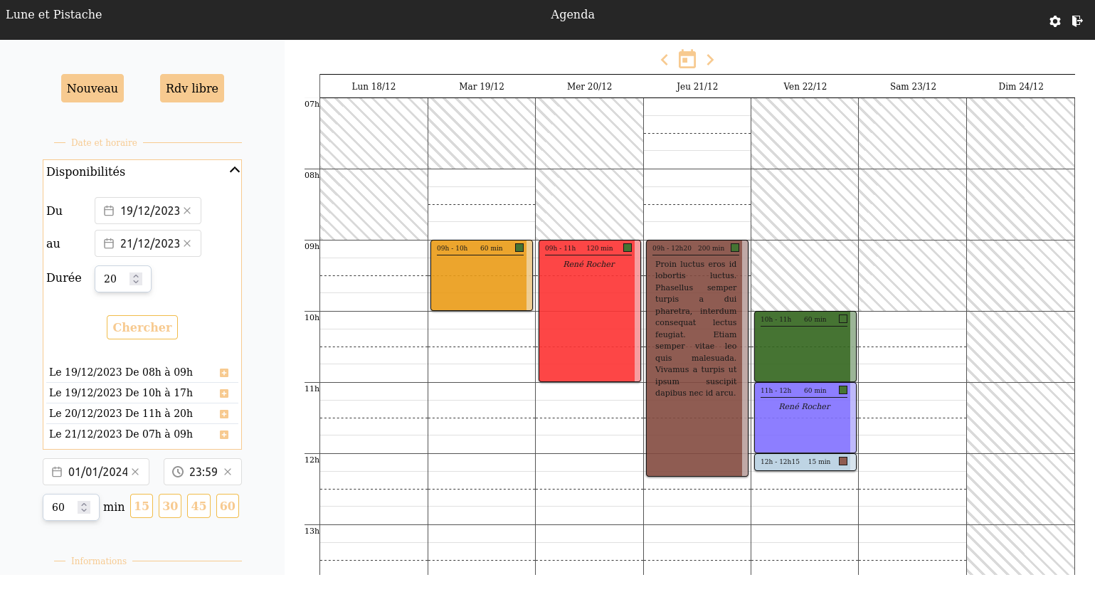 - Le calendrier et la prise de rendez-vous