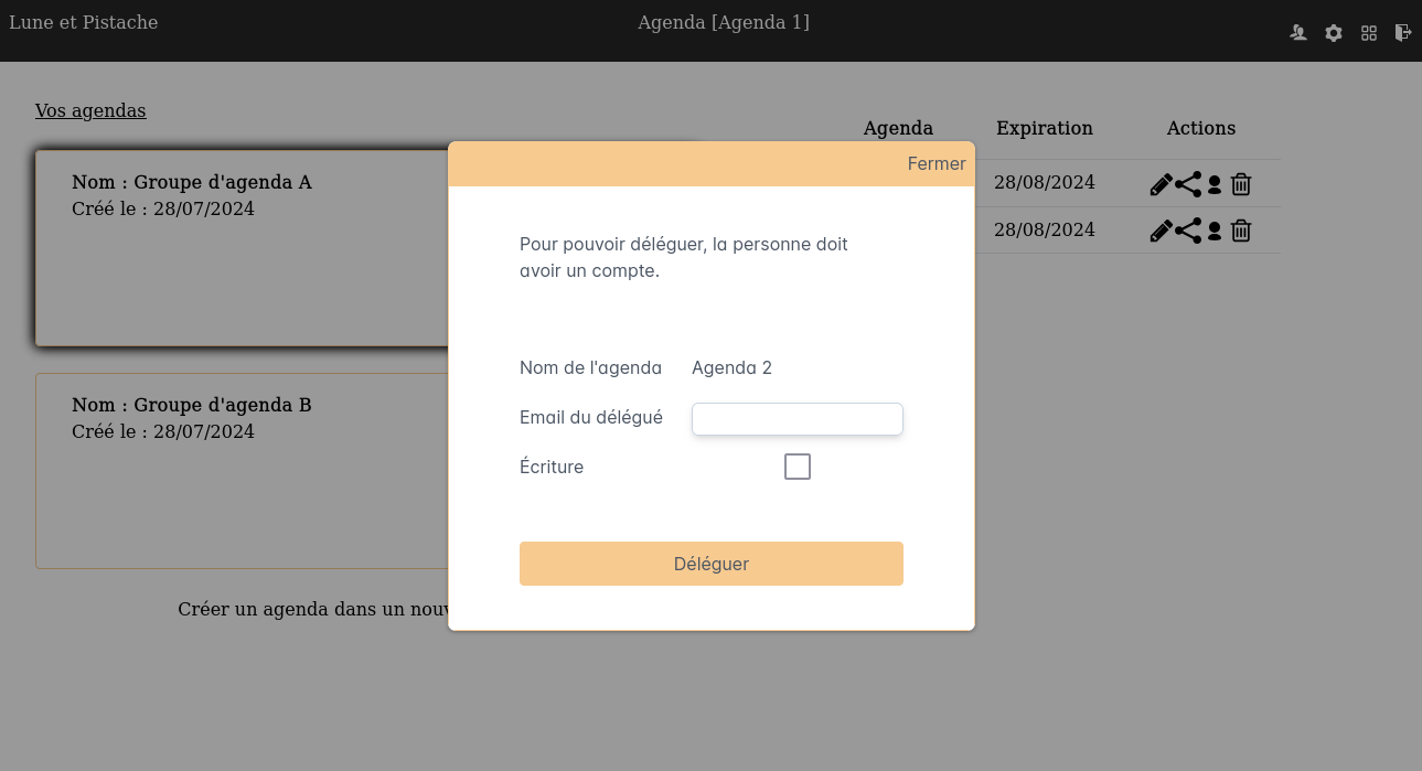 Vous pouvez déléguer vos agendas à une ou plusieurs personnes :