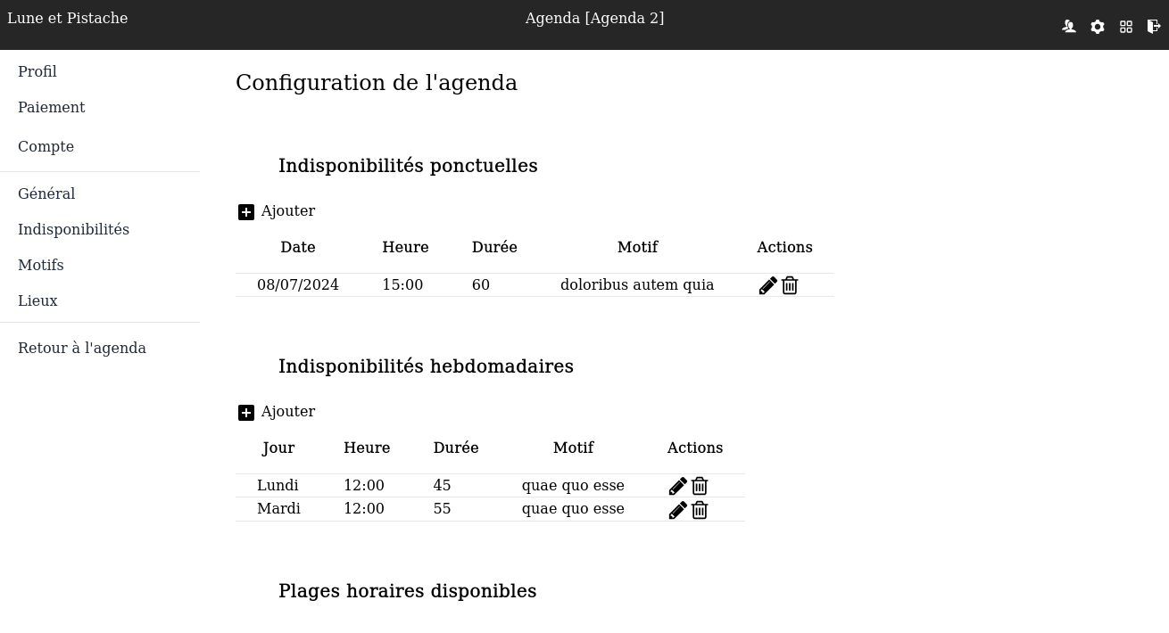 Vous pouvez gérer vos indisponibilités hebdomadaires et exceptionnelles.