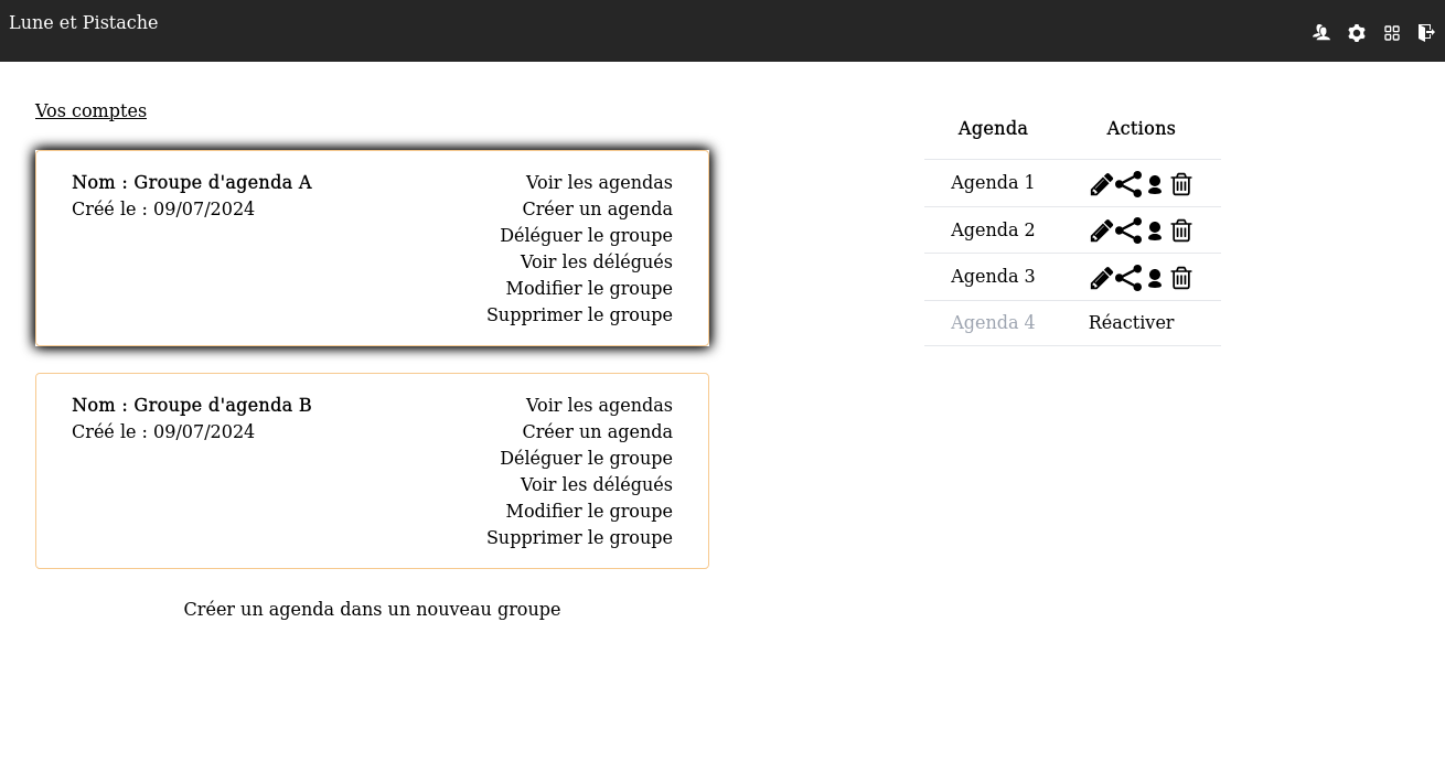 Un panneau permet de lister et gérer votre ou vos agendas.
